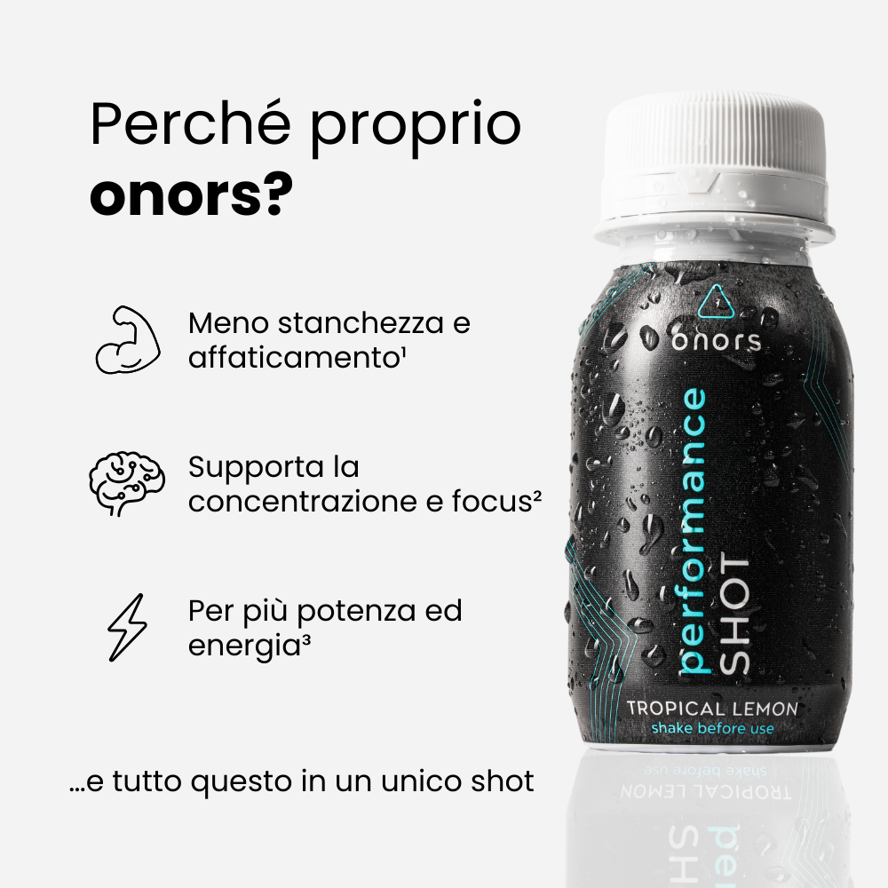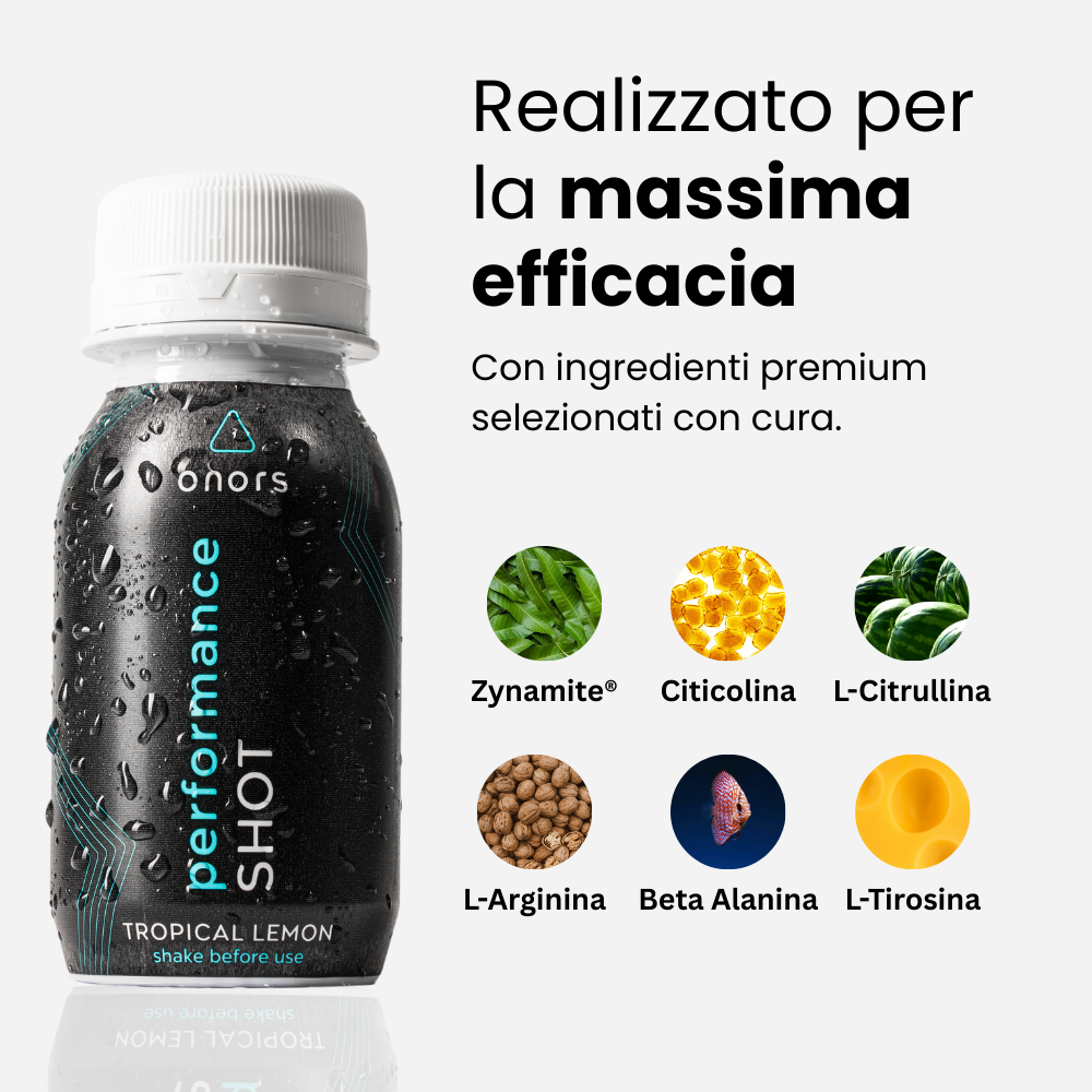 Nota: il Performance Shot contiene una piccola quantità di caffeina (50 mg) – è importante che i minorenni ne siano consapevoli e lo valutino nella propria decisione d’acquisto.