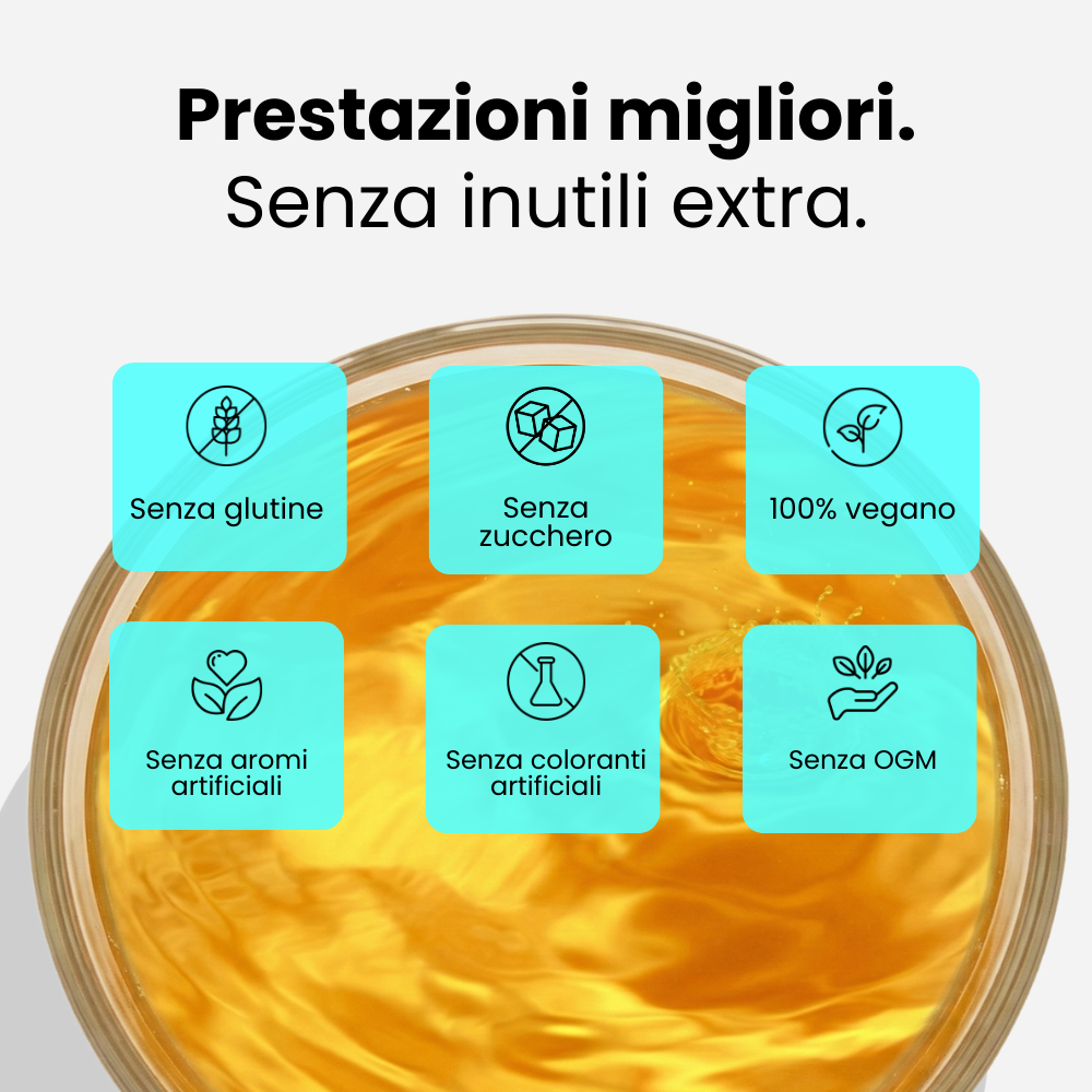 Effetto: Gli ingredienti accuratamente selezionati del Performance Shot contribuiscono al mantenimento della prestazione fisica e mentale negli atleti: